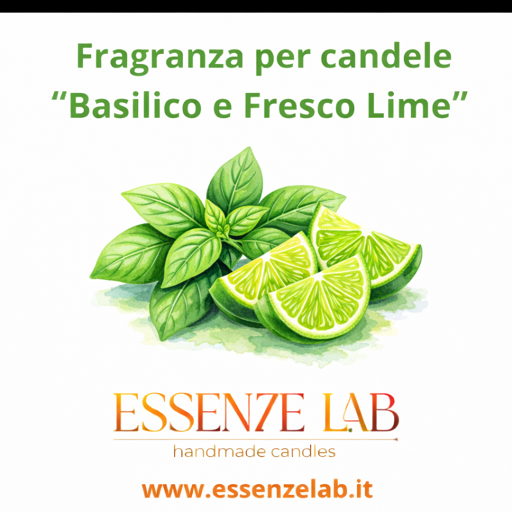 Basilico e Fresco Lime è una profumazione energizzante e pulita, ideale per creazioni artigianali che vogliono trasmettere sensazioni di freschezza, vitalità e leggerezza, perfetta per ambienti luminosi e contemporanei.